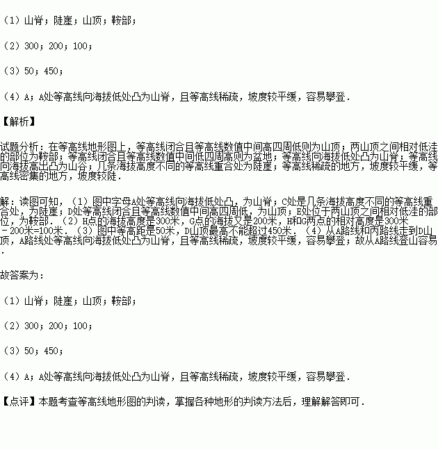 读某地等高线地形图
