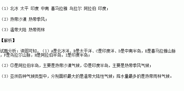 A_______洋,B____________洋,C ____________洋,D_________半岛,E____________山脉,F______________山脉,H_______________半岛,I_____________半岛。