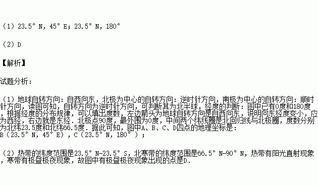 (2)图中有极昼极夜现象出现的点是_______________。