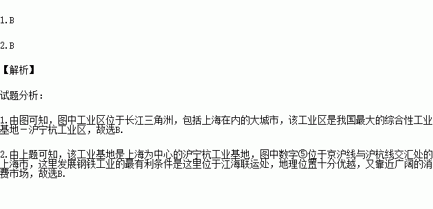 2.数字⑤所代表城市发展钢铁工业的最有利条件是( )
