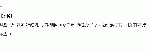我国幅员辽阔,东西相距5 000多千米,跨经度60°多,这就造成了( )
