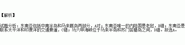 D.马六甲海峡位于马来半岛和马来群岛之间