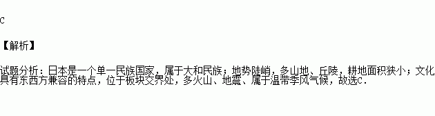 C.文化具有东西方兼容的特点 D.多火山、地震,属温带海洋性气候