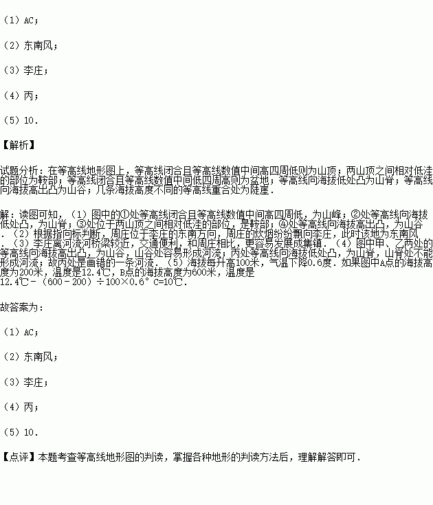 (4)图中河流有甲、乙、丙三条支流,其中画错的一条是 .