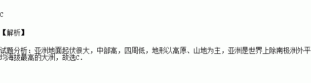 A、亚洲是平均海拔最高的大洲