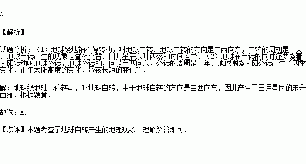 中秋佳节,一轮明月悬挂夜空.参考日出日落的现象,你是否能够推测月亮在天空中运行的方向( )
