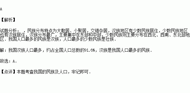 D.汉族居住的地区基本上没有少数民族聚居