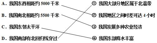 解答 解:我国南北相距5500千米,我国南北跨纬度广,我国气候复杂多样,可以发展多种农业经济;我国东西距离长,使我国东西之间的时差可达4小时;我国东临太平洋,所以我国东部地区降水丰富;我国的南部有北回归线穿过,我国大部分地区位于北温带,小部分位于热带.故答案为: