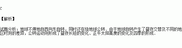 D.地球公转时,地轴是倾斜的