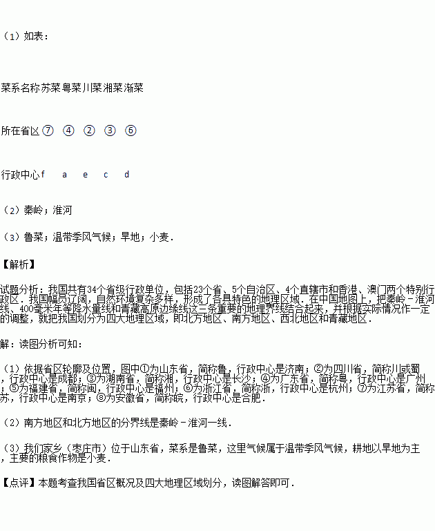 £¨2£©Õâ°Ë´ó²ËϵÖ÷Òª·Ö²¼ÓÚÎÒ¹úµÄ±±·½µØÇøºÍÄÏ·½µØÇø£¬Á½µØÇøµÄ·Ö½çÏßÊÇ ¡¢ Ò»Ïߣ®