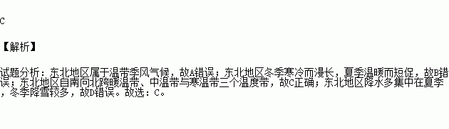 A.东北地区属于温带大陆性气候,昼夜温差大