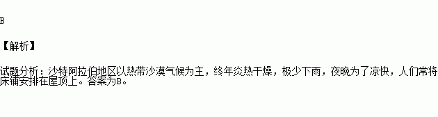 在沙特阿拉伯,一些旅店把床铺安排在屋顶上。其中的原因有( )