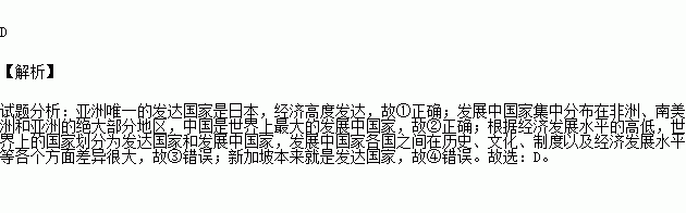 下列关于亚洲各国经济发展水平差异的叙述,正确的是( )