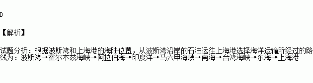 我国是世界上重要的石油进口大国,将石油从波斯湾运往上海,最近的航线是( )