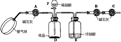 (5)若所取样品的质量为6g,分液漏斗F中盛放5%只含硫酸一种溶质的澄清废水,称得m1为51.20g,m2为53.40g,(计算结果保留两位小数)