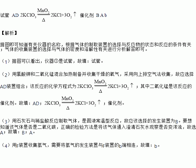 £¨2£©ÈôÓÃÂÈËá¼ØºÍ¶þÑõ»¯ÃÌ»ìºÏ¼ÓÈÈÖÆ±¸²¢ÊÕ¼¯¸ÉÔïµÄÑõÆø£¬ÄãӦѡÔñ_____×°ÖÃ×éºÏ£¨ÌîÐòºÅ£©£¬¸Ã·´Ó¦µÄ»¯Ñ§·½³ÌʽΪ_____£»ÆäÖжþÑõ»¯ÃÌÊǸ÷´Ó¦µÄ_____¡£
