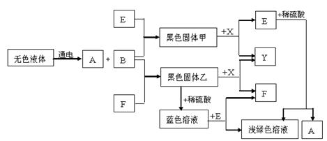 以下是一些常见物质间互相转化的关系图(有些反应条件已省略):已知高温下CO能与多种金属氧化物反应生成相应的金属单质和CO2气体。下列关系图中,A、B、X、Y均为无色气体,E、F为常见金属。![]()