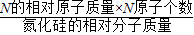| A、氮化硅中Si、N两种元素的质量比为3:4 | B、氮化硅中氮元素的质量分数为40% | C、140g氮化硅中含硅元素的质量为84g | D、氮化硅的相对分子质量为140g |