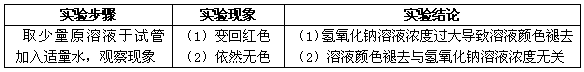(1)氢氧化钠溶液浓度过大导致溶液颜色褪去 (2)溶液颜色褪去与氢氧化钠溶液浓度无关 (1)氢氧化钠溶液浓度过大导致溶液颜色褪去 (2)溶液颜色褪去与氢氧化钠溶液浓度无关 |
