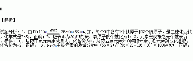 地质考察人员发现一种带螺纹的矿石,研究时发现该矿石能在氧气中燃烧,主要反应是4X+11O2