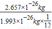 解答:解:由碳-12原子的质量为1.993x10-26kg,A原子的质量为2.657×10-26kg,