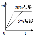£¨2£©ÇëÔÚ¸ÃͼÉϲ¹»­³ö20%µÄÏ¡ÑÎËáÓëпƬ·´Ó¦mÓëtµÄ¹ØÏµÇúÏß¡£