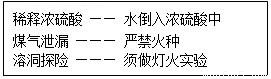 B、根据稀释浓硫酸、煤气泄漏、溶洞探险的注意事项判断;