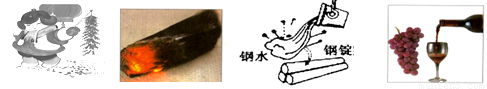 A.爆竹爆炸 B.木炭燃烧 C.钢水浇铸 D.葡萄酿酒