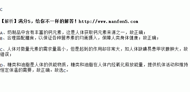 A. 奶制品中含钙丰富,是日常饮食中钙的来源之一