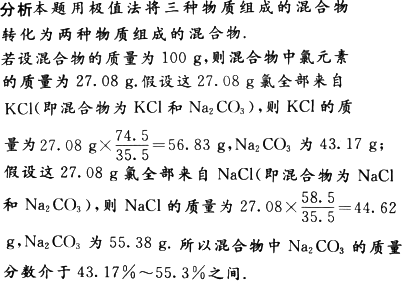 某混合物中含有KCl、NaCl和Na2CO3,经分析知含钠为31.5%,含氯为27.08%(以上均为质量分数),则混合物中Na2CO3的质量分数为