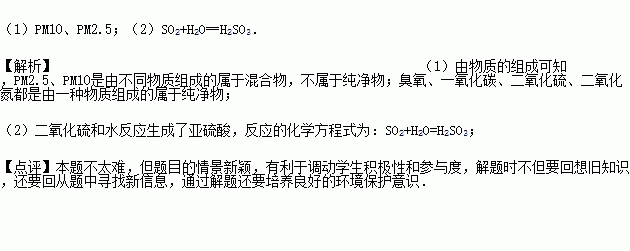 £¨1£©»·¾³¿ÕÆøÖÊÁ¿Ö¸ÊýÖ÷ÒªÆÀ¼ÛµÄÁùÏîÎÛȾÎïÖУ¬²»ÊôÓÚ´¿¾»ÎïµÄÊÇ