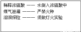 B、煤气具有可燃性,所以泄漏时要严禁火种,防止发生爆炸;溶洞中二氧化碳的含量较多,二氧化碳不供呼吸,为保证人身安全,要先做灯火实验;稀释浓硫酸要将浓硫酸倒入水中,题目操作错误;