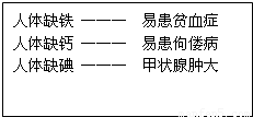 C、人体缺铁,易患贫血病;人体缺钙,易患佝偻病;人体缺碘,易患甲状腺肿大,正确;