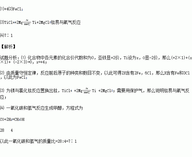 ⑶ ③中需要氩气(Ar)作保护气,请写出③中反应的化学方程式 ,并推测钛的一点化学性质 。