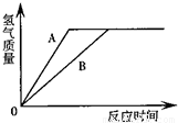有等质量的A、B两金属,A相对原子质量小于B相对原子质量,将A、B分别放入相同溶度、相同质量的稀硫酸中,在反应中A、B均为正二价,产生氢气的质量随反应时间变化曲线如如图.下列说法正确的是( )
