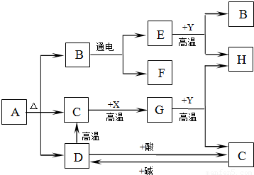 精英家教网图中A、B、C、D、E、F、G、H分别代表相关反应的一种物质.已知:X、H为黑色固体单质,D是大理石的主要成分,Y为红棕色粉末.常温下C、E、F、G均为无色气体,图中有部分生成物未标出.请填写以下空白: