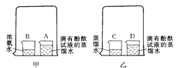 酚酞试液遇蒸馏水不变色;酚酞试液遇浓氨水变红色