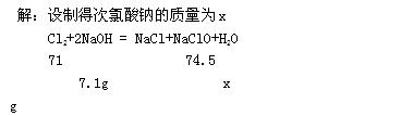 Cl2+2NaOH == NaCl+NaClO+H2O。计算7.1g氯气(Cl2)理论上可以制得次氯酸钠的质量。