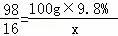 | 解答: | 解:氧化铁和氧化铜与稀硫酸反应的化学方程式为:Fe2O3+3H2SO4═Fe2(SO4)3+3H2O;CuO+H2SO4═CuSO4+H2O;由于氧化铜和氧化铁的混合物与100克9.8%的稀硫酸恰好完全反应,分析化学方程式可知氧化物中氧元素全部转变为水中的氧元素,计算出水的质量进而计算出所含氧元素的质量即可; 设生成水中氧元素质量是x:由方程式可以看出硫酸与生成水中氧元素的关系为 H2SO4 ~H2O~~O 98 16 100g×9.8% x 根据: 故选C. |