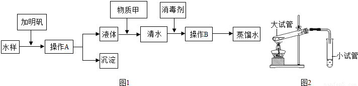 (4)小明用图2进行该操作,大试管中要先放一些碎瓷片,其作用是______.加热一段时间后,小试管内收集到很少的液体,试管口有大量白雾.请你分析后,对该装置稍作改进:______.