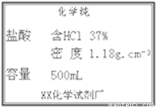 实验室有一瓶未开封的浓盐酸,部分标签如图所示.
