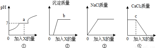 解答:解:A、逐滴滴入碳酸钠溶液,碳酸钠应先和盐酸反应,故溶液的pH值增大,当盐酸完全反应后,溶液的pH值等于7,碳酸钠与氯化钙反应,溶液的pH值为7,当氯化钙完全反应后,再滴入碳酸钠,因为碳酸钠显碱性,故溶液的pH值大于7,故①图正确;
