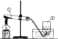 (2)仪器①为装置中用作加热分解高锰酸钾反应容器的试管;仪器②为装置中用于收集气体的集气瓶;为预防高锰酸钾随气流进入水槽,通常在试管口放一团棉花,过滤混在气体中的高锰酸钾小颗粒;排水法收集气体时,集气瓶口有大气泡冒出,说明收集满了;