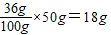 B、20℃时氯化钠溶解度是36g,将30g氯化钠放入50g水中,溶解的氯化钠的质量为: