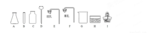 (3)气体发生装置中一定要有一个反应容器,故A、B中必选一个;气体要收集,必须用到集气瓶,故C必须选;橡皮塞E、F中也必选一个,但如果选双孔橡皮塞E,则长颈漏斗D必选;烧杯不需要,酒精灯也一定用不到,因为该反应不要加热,水槽也用不到,因为从导管看,采用的是排空气法收集。故得出上述答案。