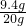 ∴原混合物中氯化钠的质量是:20g-10.6g=9.4g