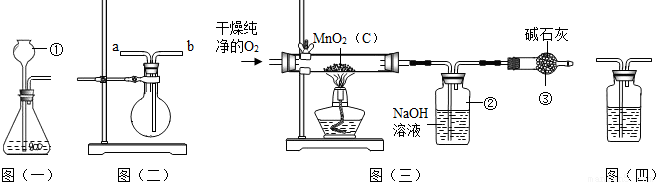 (3)图(三)是用干燥纯净的O2与样品反应来测定二氧化锰质量分数的装置,装置③中装有碱石灰(生石灰与固体氢氧化钠的混合物),其作用是