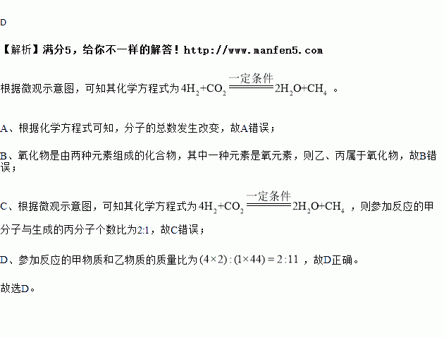节能减排中“减排”的重要手段是合理利用二氧化碳。科学家正致力于将二氧化碳转化为甲烷,其反应的微观示意图如图所示。下列叙述正确的是( )