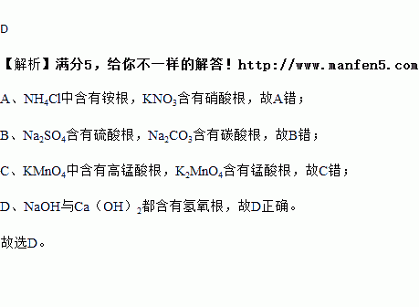 C. KMnO4与K2MnO4 D. NaOH与Ca(OH)2