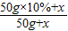 解答:解:(1)若使用蒸发水的方法,设蒸发水的质量为y,则有×100%=20%,解得y=25g,故A错误,B正确;
